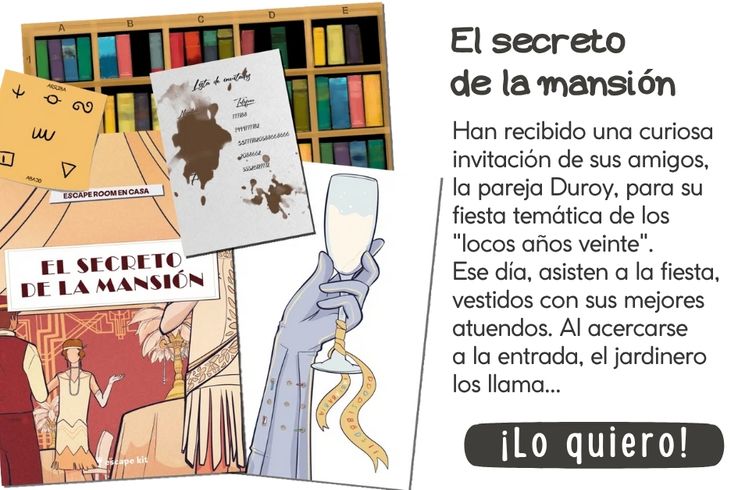 El secreto de la mansión | Un kit de Escape Room para una emocionante investigación para dandis y damiselas, ¡convirtiendo tu casa en una fiesta Gatsby! Es la forma perfecta de animar tus fiestas y adentrarte en el mundo de los locos años veinte, o de anunciar una noticia a tus seres queridos.