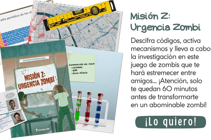 Misión Z: Urgencia Zombi | ¡Estás atrapado! Solo te queda una hora para salir vivo. Participa en una experiencia inmersiva que combina Escape Room e investigación policial en tu salón…